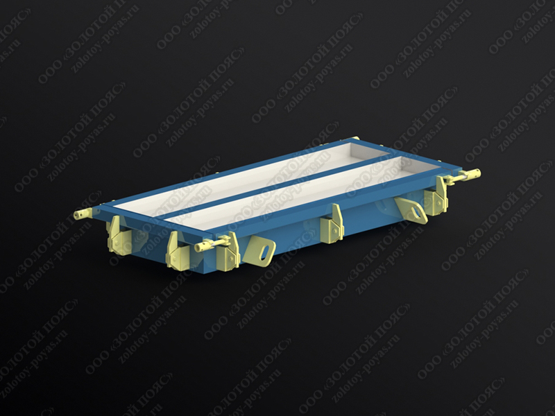 Стальная форма предназначается для изготовления плит лотков марки ПП8 (Серия 3.006.1-8, выпуск 3-1). Плиты лотков необходимы для формирования каналов и тоннелей с заглублением и наличием прочного перекрытия.