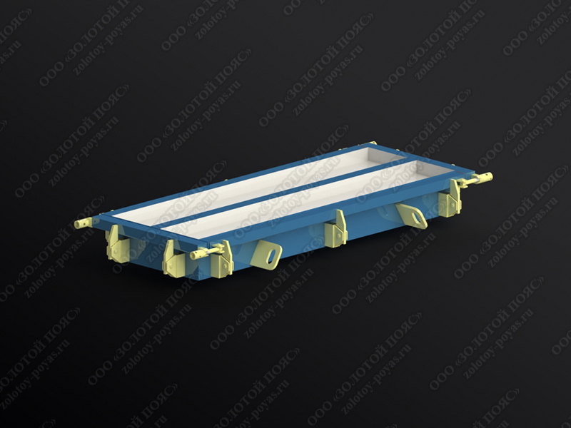 Стальная форма предназначается для изготовления плит лотков марки ПП9 (Серия 3.006.1-8, выпуск 3-1). Плиты лотков необходимы для формирования каналов и тоннелей с заглублением и наличием прочного перекрытия.