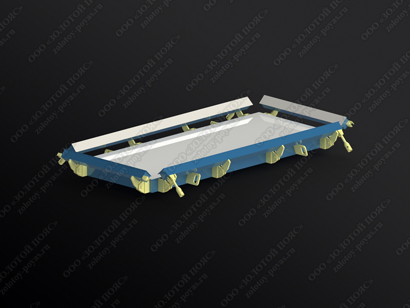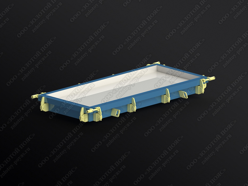 Стальная форма предназначается для изготовления крышек лотков марки ПТ 300.120.12, ПД 300.120.12 (Серия 3.006.1-8, выпуск 3-1). Плиты лотков необходимы для формирования каналов и тоннелей с заглублением и наличием прочного перекрытия.