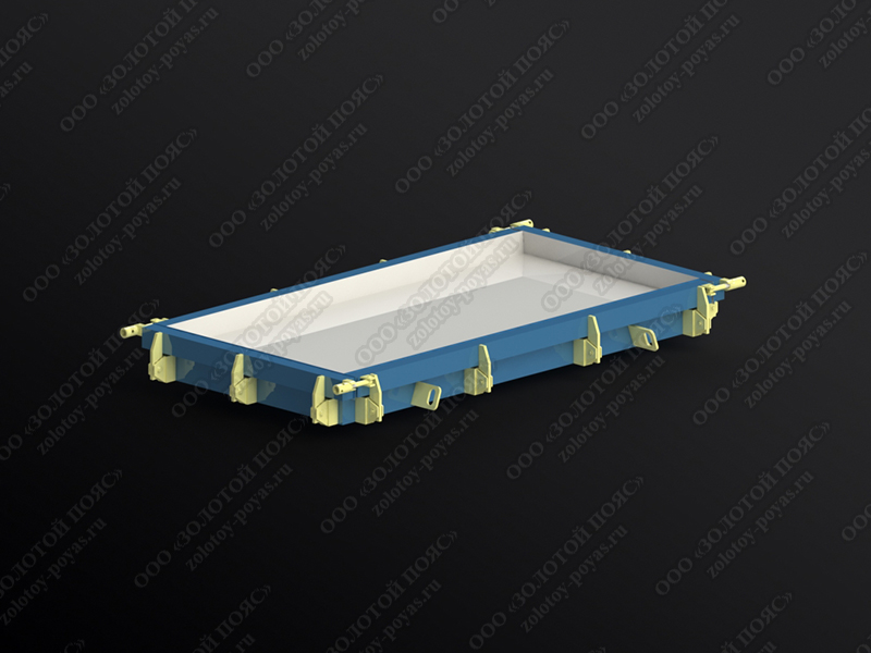 Стальная форма предназначается для изготовления крышек лотков марки ПТ 300.150.14, ПД 300.150.14 (Серия 3.006.1-8, выпуск 3-1). Плиты лотков необходимы для формирования каналов и тоннелей с заглублением и наличием прочного перекрытия.