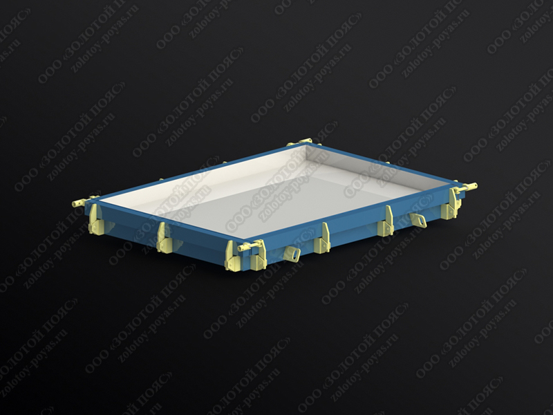 Стальная форма предназначается для изготовления крышек лотков марки ПТ 300.210.16, ПД 300.210.16 (Серия 3.006.1-8, выпуск 3-1). Плиты лотков необходимы для формирования каналов и тоннелей с заглублением и наличием прочного перекрытия.
