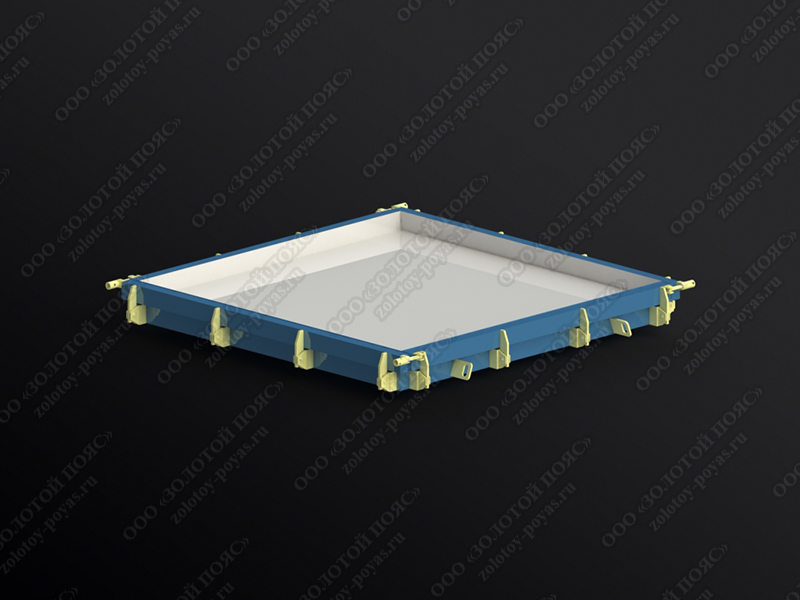 Стальная форма предназначается для изготовления крышек лотков марки ПТ 300.300.16, ПД 300.300.16 (Серия 3.006.1-8, выпуск 3-1). Плиты лотков необходимы для формирования каналов и тоннелей с заглублением и наличием прочного перекрытия.