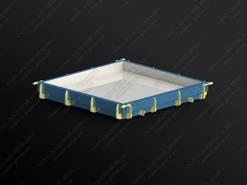 Стальная форма предназначается для изготовления крышек лотков марки ПТ 300.300.25, ПД 300.300.25 (Серия 3.006.1-8, выпуск 3-1). Плиты лотков необходимы для формирования каналов и тоннелей с заглублением и наличием прочного перекрытия.