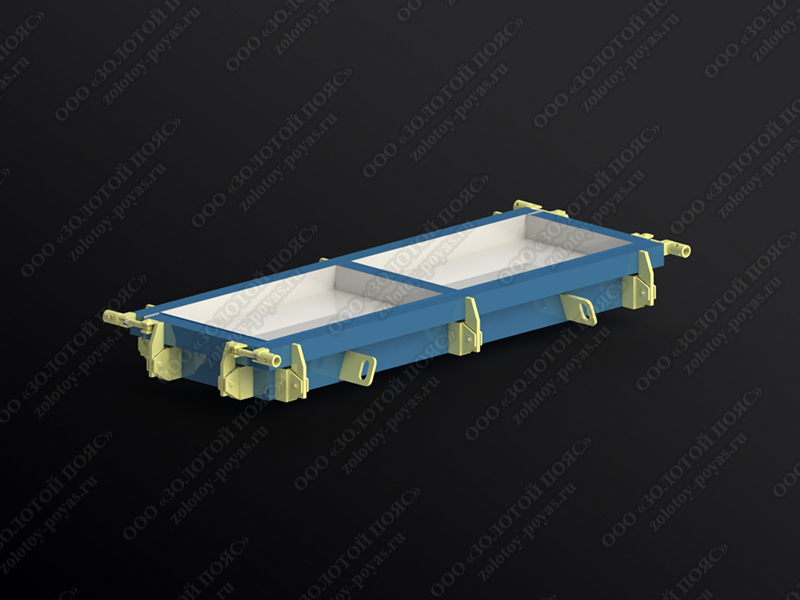 Стальная форма предназначается для изготовления крышек лотков марки ПТ 75.120.12, ПД 75.120.12 (Серия 3.006.1-8, выпуск 3-1). Плиты лотков необходимы для формирования каналов и тоннелей с заглублением и наличием прочного перекрытия.